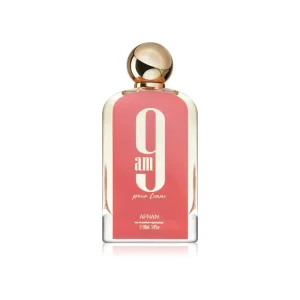 9 AM Pour Femme es una fragancia vibrante y versátil que combina notas frutales y florales con un fondo suave y reconfortante. Su aroma es limpio, moderno y encantador, ideal para acompañar la rutina diaria con un toque sofisticado sin resultar pesado. Es perfecta para quienes buscan un perfume femenino, fresco y fácil de llevar.