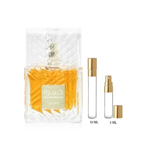 En su fondo, Khamrah se vuelve más profundo y envolvente, con una base amaderada, avainillada y ambarada que se fija en la piel dejando una estela intensa y duradera. Es ideal para quienes buscan un perfume llamativo, elegante y perfecto para noches, ocasiones especiales o climas fríos.